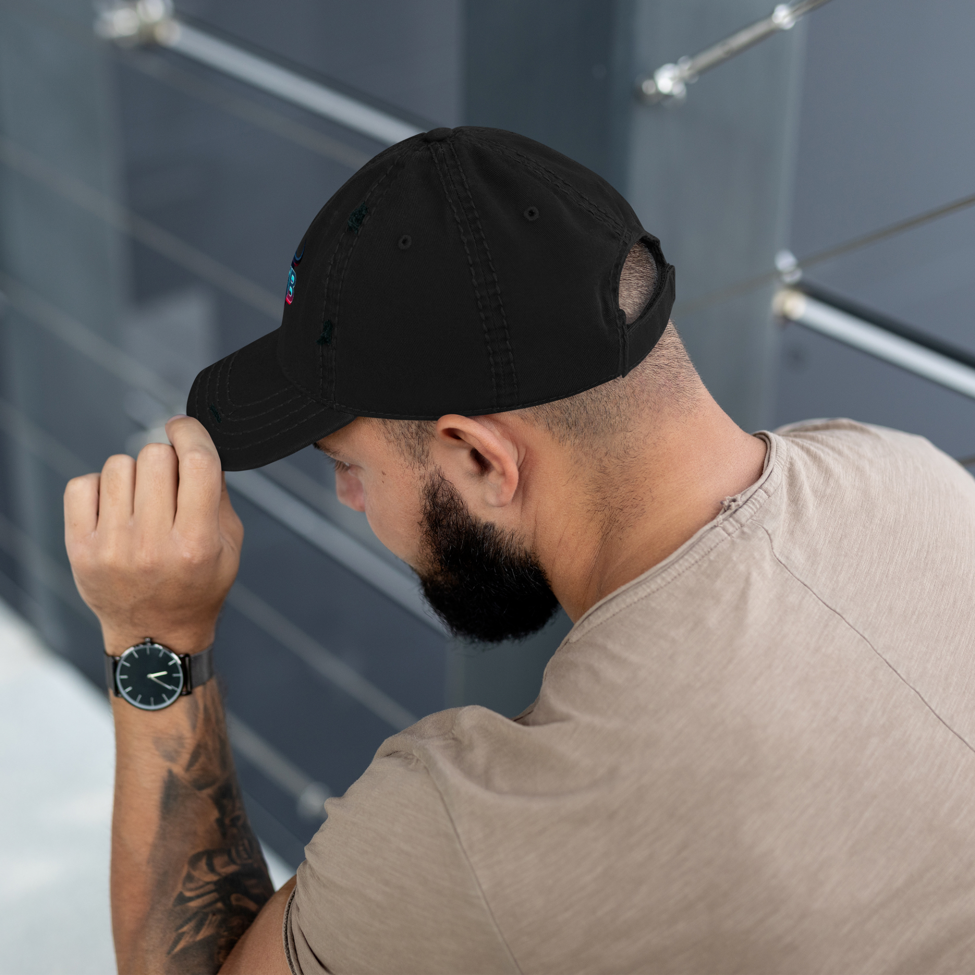 Hat distressed TDFB logo zwart
